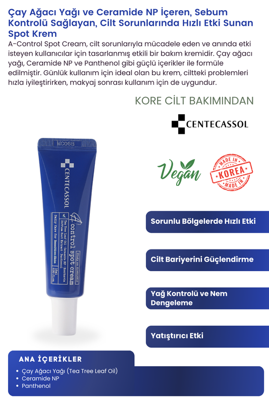 CENTECASSOL Çay Ağacı Yaprağı Özü İçeren Bariyer Güçlendirici, Nemlendirici, Günlük Bakım Kremi - A-Control Spot Krem