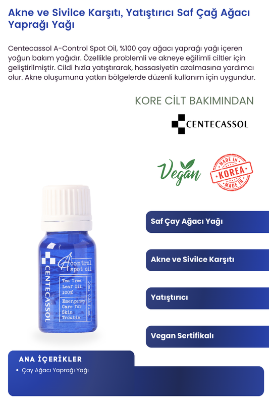 CENTECASSOL Sivilce ve Akne Karşıtı, Yatıştırıcı, Nemlendirici, Onarıcı 100% Çay Ağacı Yaprağı Yağı