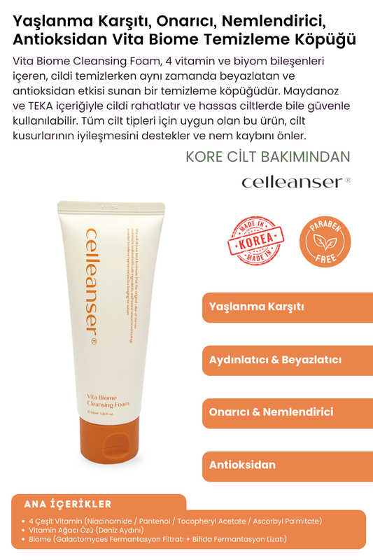 CELLEANSER Yaşlanma Karşıtı, Onarıcı, Nemlendirici, Antioksidan Vita Biome Temizleme Köpüğü